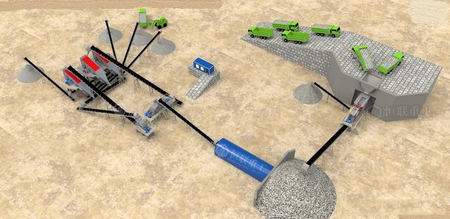 注意事项;鄂破出来的物料需要经过中转库,以保证后续生产连续稳定,建议中转库要储存3000方物料,生产线主机搭建完毕还要为关键的环保处理,干法生产的话全封装负压除尘,湿法生产的话,全部喷淋加污水处理系统,以保证环保达标。