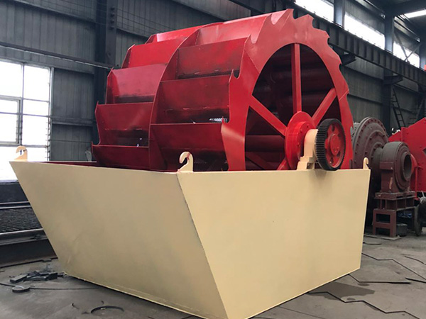 轮斗洗砂机在工作时,通过电机三角带、减速机、齿轮减速后带动叶轮缓慢转动,砂石有给料槽进入洗槽中,在叶轮的带动下翻滚,并互相研磨,除去覆盖砂石表面的杂质,同时破坏包覆砂粒的水汽层,以利于脱水;同时加水,形成强大水流,及时将杂质及比重小的异物带走,并从溢出口洗槽排出,完成清洗作用。干净的砂石由叶片带走, 从旋转的叶轮倒入出料槽,完成砂石的清洗作用。