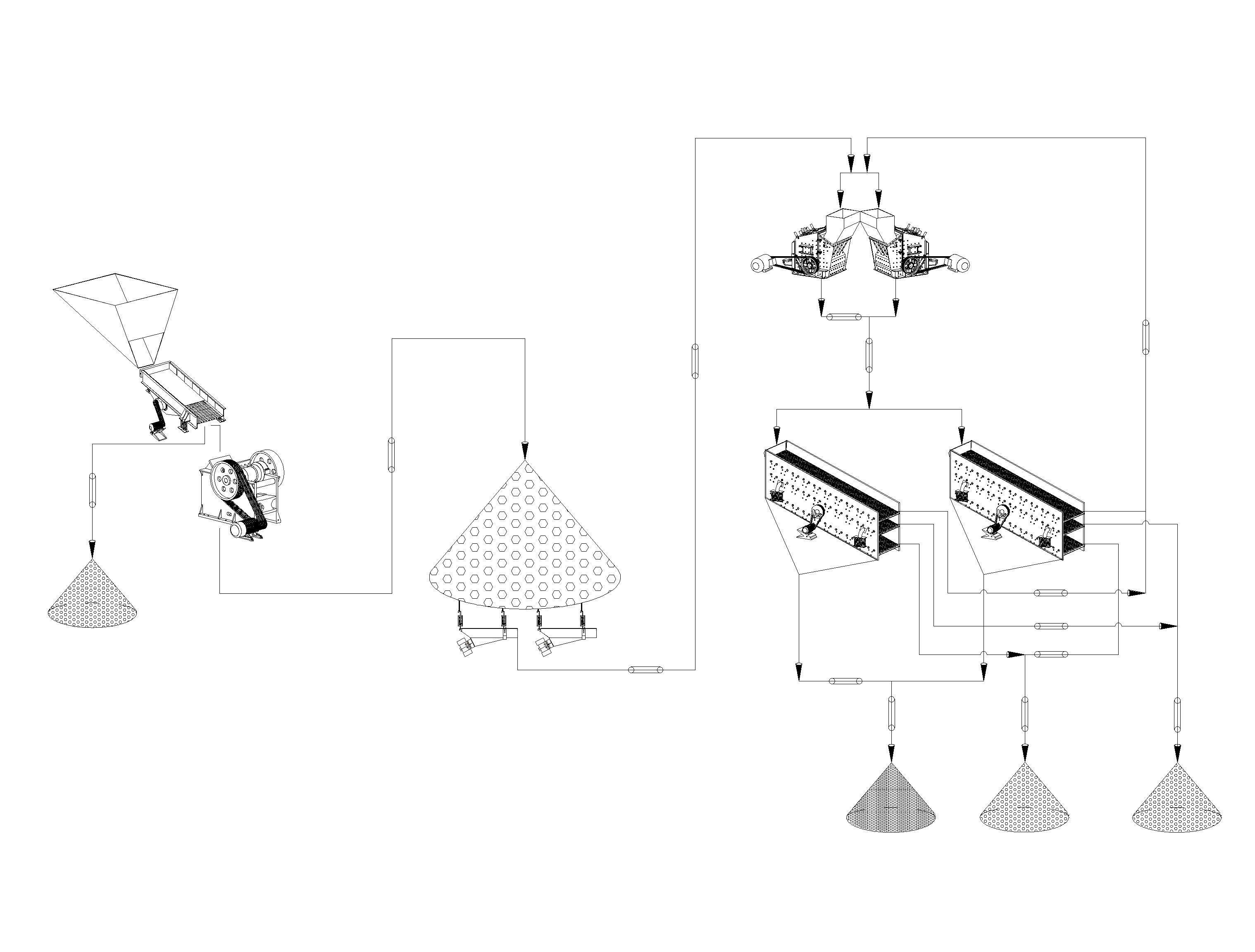 首先开采的鹅卵石通过振动筛进行筛分,将细小的符合要求的通过洗砂机直接制成成品料、不满足粒度要求的先通过颚式破碎机进行一级破碎,然后通过皮带机送入到圆锥破中进行二级破碎,破碎后的物料再次通过振动筛进行筛分,符合要求的通过洗砂机进行洗砂,不符合的物料通过皮带机送入到鹅卵石德赢vwin8868官网中进行制砂、整形。再由振动筛进行筛分,降符合要求粒度大小的物料进行洗砂,不符合要求的物料再次通过鹅卵石德赢vwin8868官网进行循环破碎,终得到成品物料。
