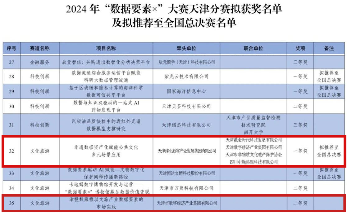 津投数藏荣获2024年“数据要素×”大赛天津分赛一、二等奖