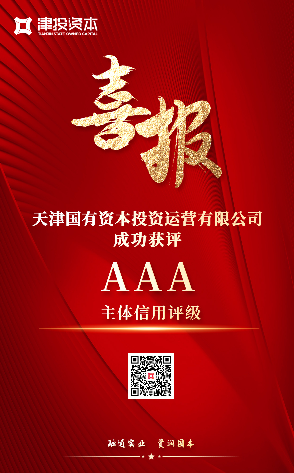 津投资本始终坚持围绕天津市委、市政府和市国资两委关于深化国企改革和实现高质量发展的战略部署,以“融通实业 资润国本”为使命,抢抓机遇、主动作为,整合资源优化产业布局,创新培育新质生产力,积极推动“三新”“三量”工作取得扎实成效。此次获评AAA主体信用评级,标志着津投资本跻身国内最高信用等级行列,在产业布局、管理水平、资产质量、信用能力、发展潜力等方面获得了充分肯定。