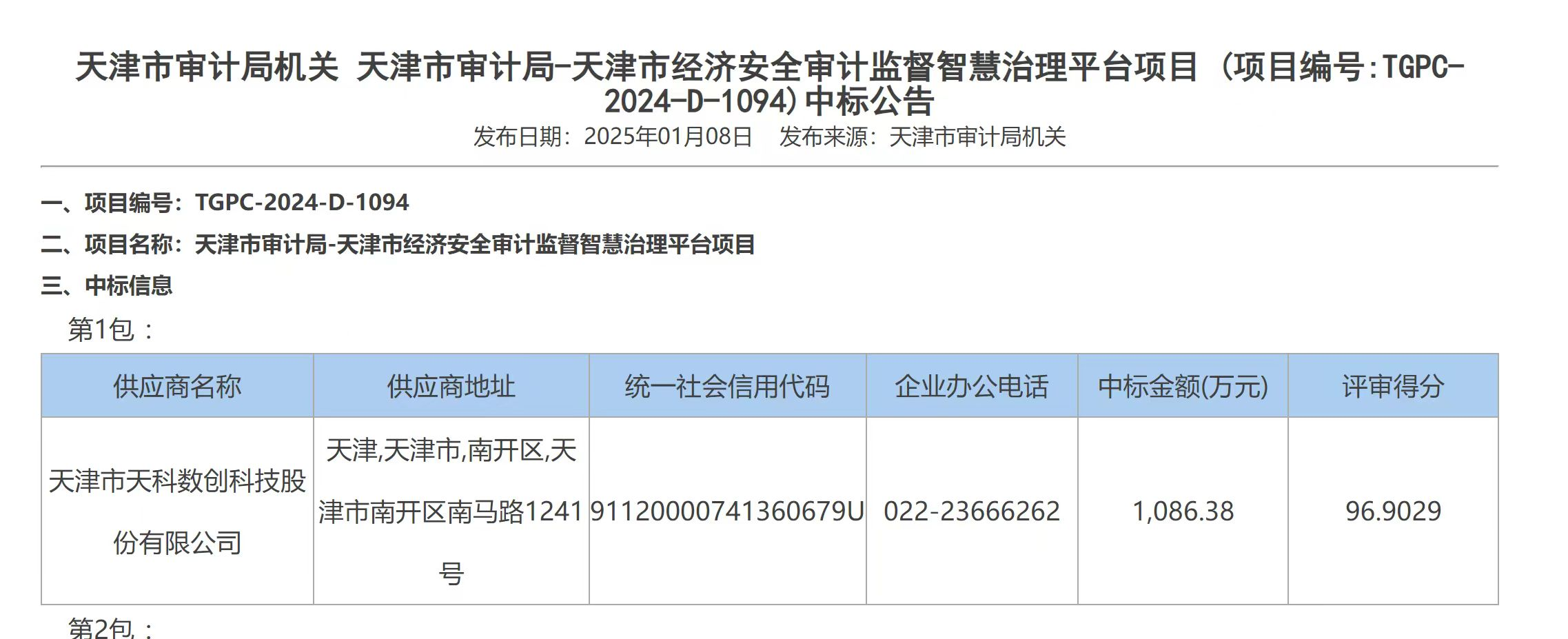 近日,津投资本所属天津数字经济产业集团有限公司(以下简称“天数集团”)旗下天津市天科数创科技股份有限公司(以下简称“天科数创”)与天津数字认证有限公司(以下简称“天津CA”)捷报频传,分别中标“天津市审计局智慧治理平台项目”及“天津市综合认证服务平台建设项目”,数智赋能天津市政府数字化转型发展。